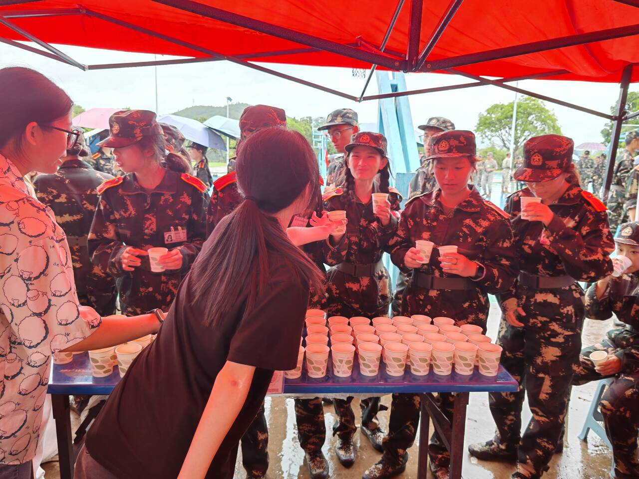 活动前期,由米兰milan官方网站团委干部干事们在湖边篮球场右侧温暖站准备防暑医药物资和清凉的茶饮。随着军训休息哨声的响起,米兰milan官方网站团委干部们贴心地为学弟学妹们递出各类凉茶,以备他们能够及时能量补给,消除疲惫,增添动力。此举既为经院新生们带来了心灵上的温暖,也让他们实实在在地增添了身体上的动力。活动最后,团委干部们积极收拾场地物资,拾捡垃圾,并留念合影。
