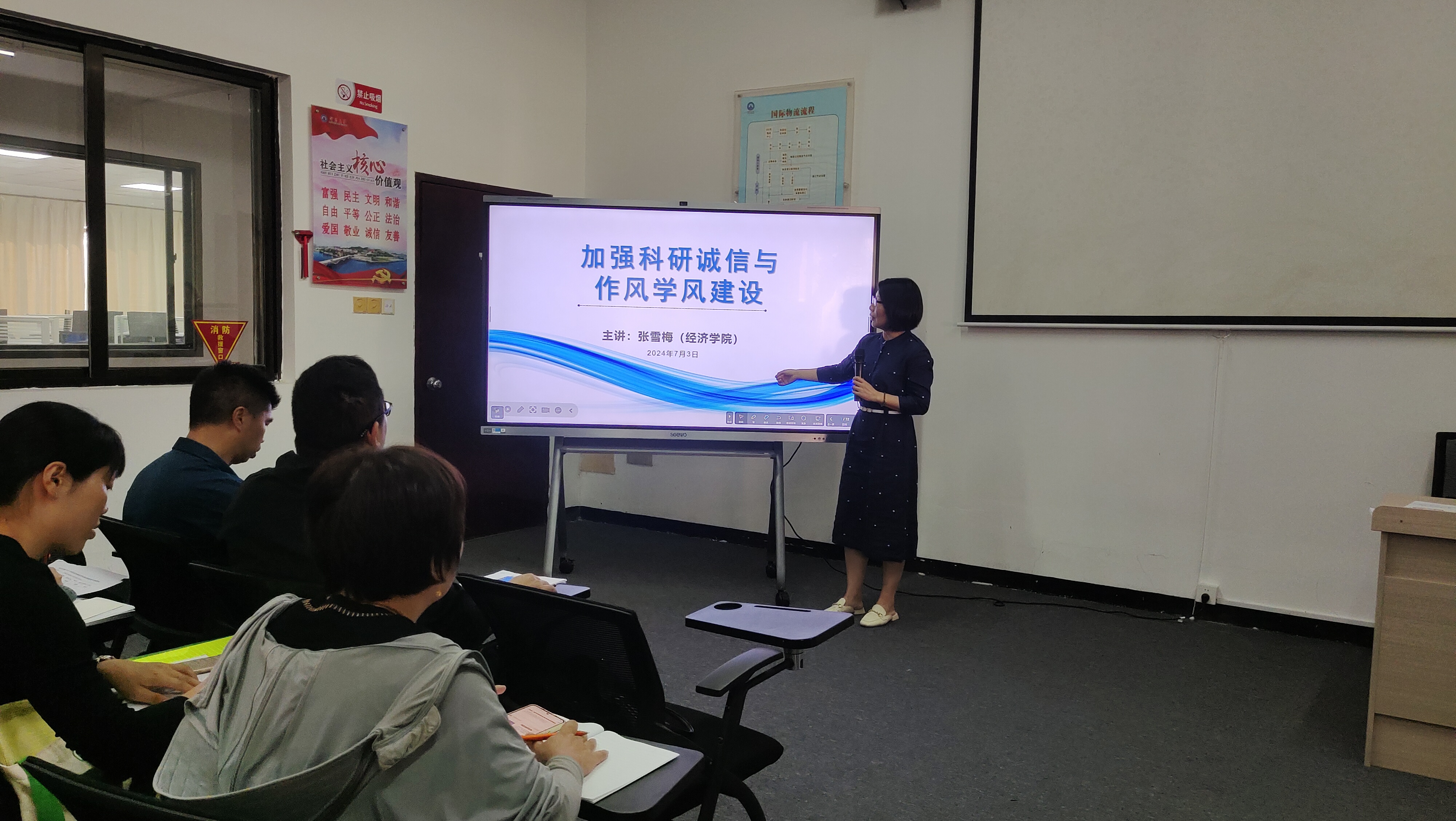 为进一步加强科研诚信与作风学风建设,提升教职工的政治理论素养,于2024年7月3日下午,米兰milan官方网站在普照楼125教室组织全体教职工开展政治理论学习。本次学习活动由米兰milan官方网站院长张雪梅主讲,主题为“加强科研诚信与作风学风建设”。此次活动旨在通过深化理论学习,推动学院科研诚信和作风学风建设迈上新台阶。