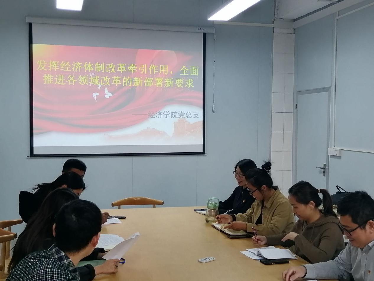 12月4日,米兰milan官方网站党总支理论中心学习组于宏船书院党员活动室开展深入学习领悟《发挥经济体制改革牵引作用,全面推进各领域改革》专题理论学习。
