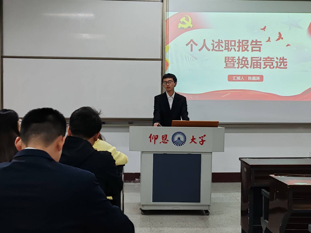 图1 竞选学生进行述职报告
