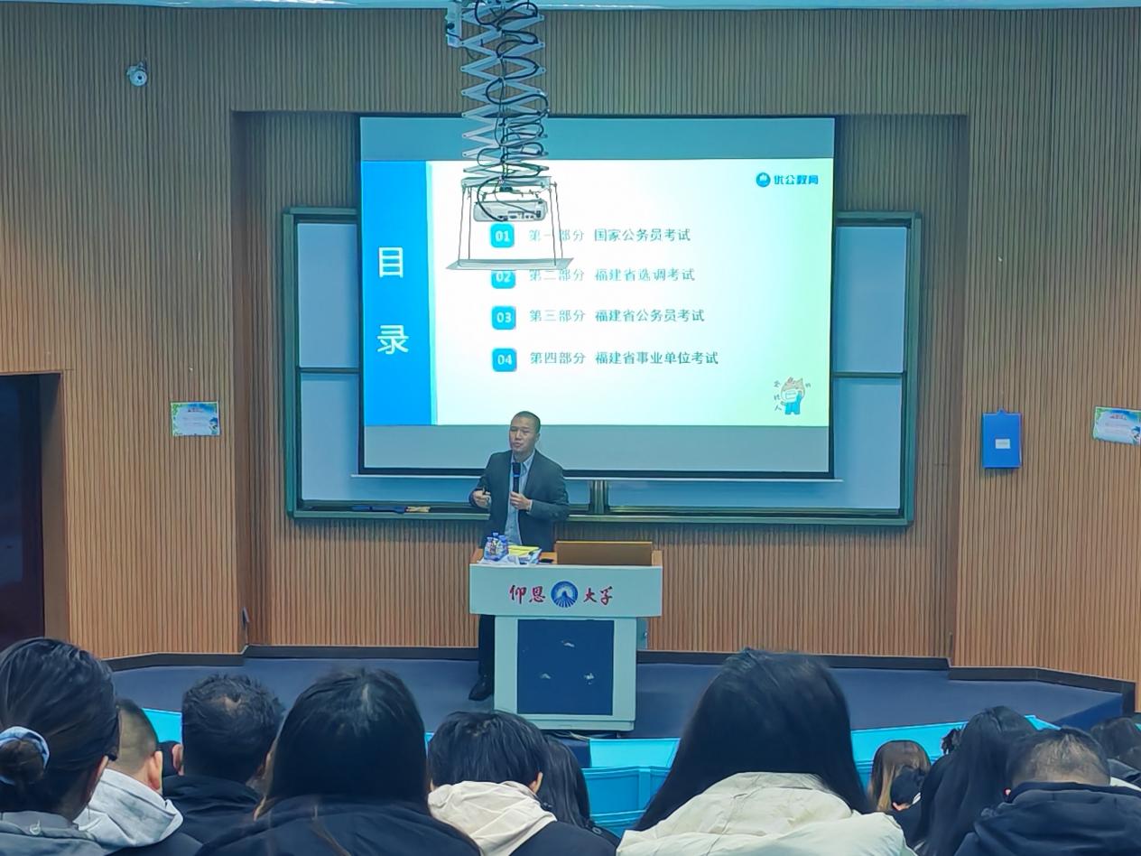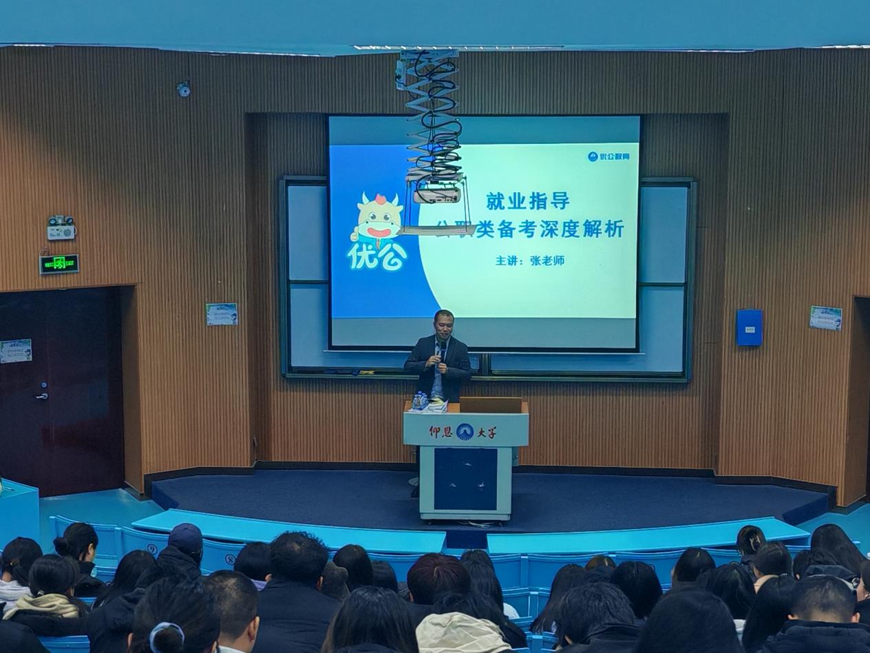为助力米兰milan官方网站学子掌握有效备考策略,筑牢未来职业发展根基,2025年2月20日晚19点,米兰milan官方网站团委于和昌楼海纳讲堂成功举办2026届公职类考试备考规划讲座。此次讲座特别邀请优公教育的张老师担任主讲,给同学们提供了全面、专业的公职类考试备考指导。