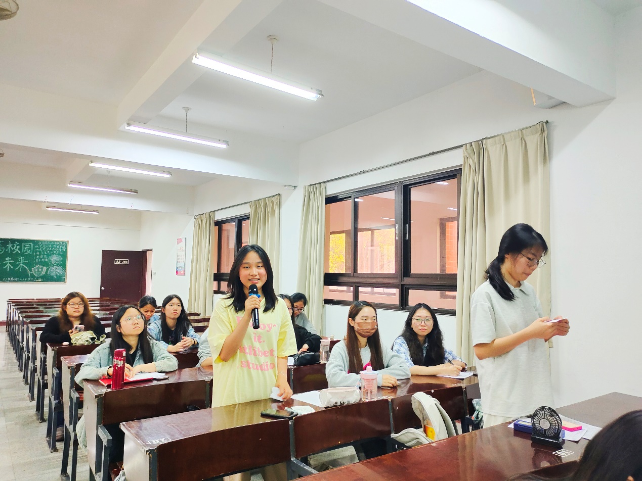 在分维度分享环节,党员代表分别从“历史细节”与“当代践行”视角展开交流。党员陈思容和邹丽雯结合“东山岛治沙”等史料,深入解读谷文昌精神的内核,指出其“实事求是、久久为功”的时代价值。党员林美君和王雨航则以教育服务、基层实践为例,分享如何将谷文昌精神转化为日常行动,倡导从志愿服务、学业先锋等小事中践行初心。活动最后,李舒航老师对此次活动进行了总结发言,她激励同学们将谷文昌精神践行于日常,在学习与工作中彰显担当,以实际行动传承好这份精神力量。
