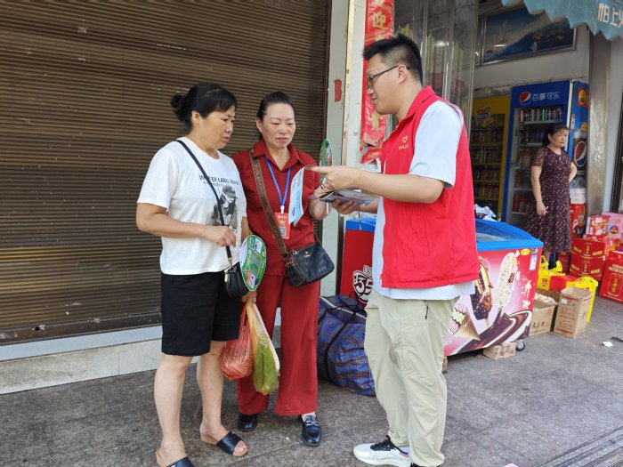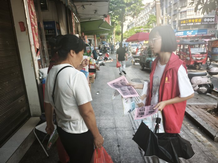 图2队员们深入社区向居民讲解典型案例
