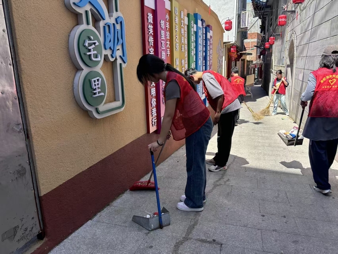 图1 队员们在街道打扫卫生