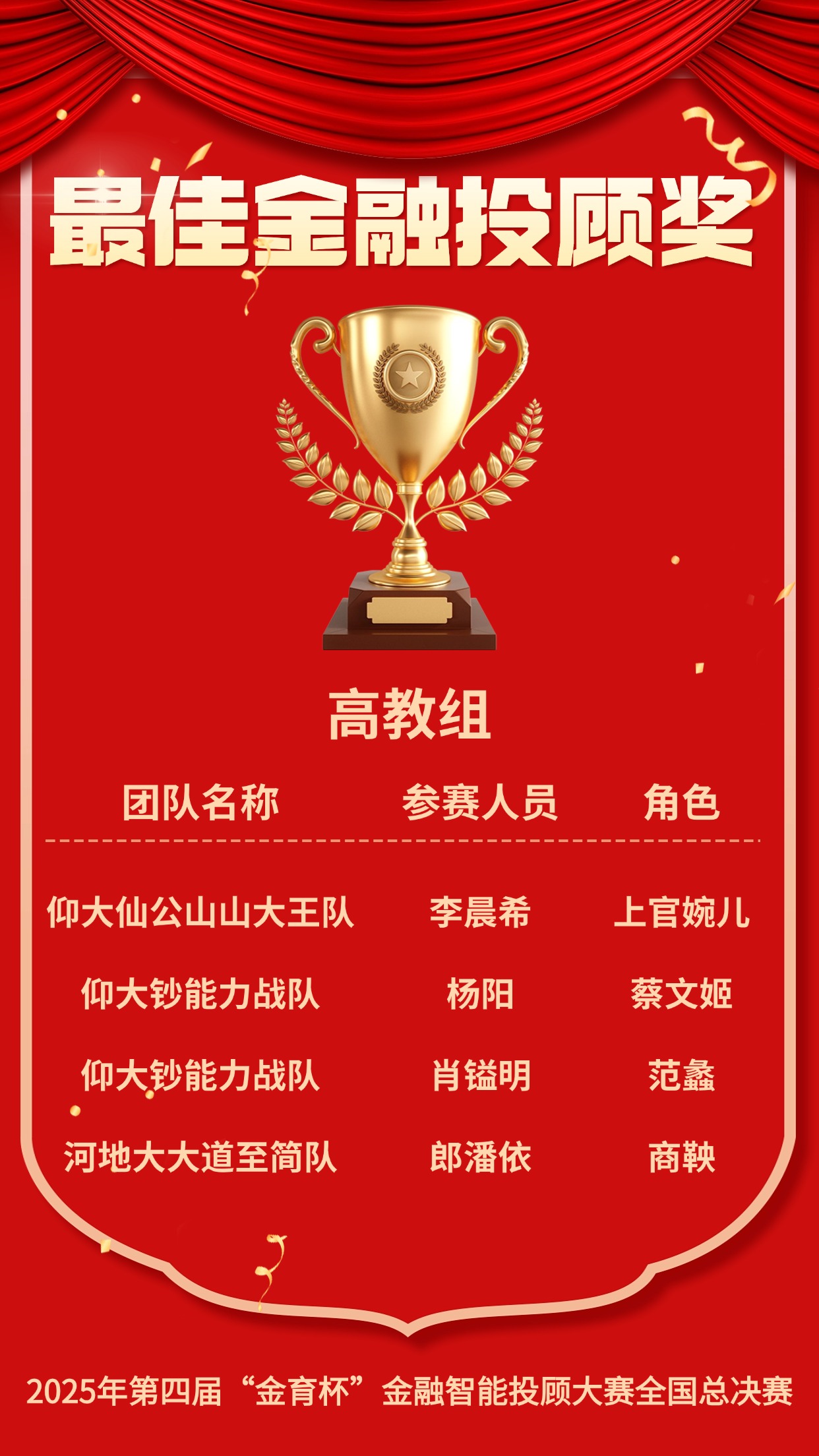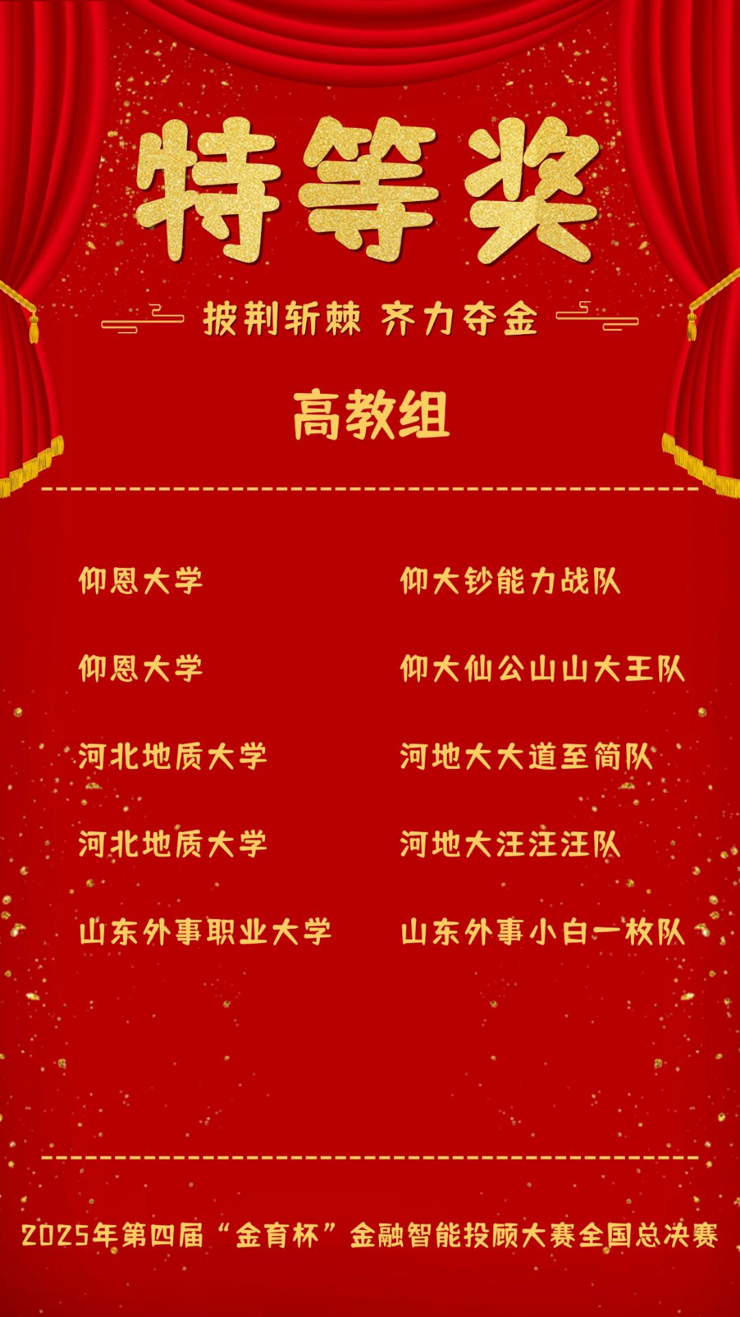 11月15日落幕的2025年第四届“金育杯”金融智能投顾大赛全国总决赛中,米兰官网两支参赛代表队在林双妹指导下从全国239支精英队伍中杀出重围,双双勇夺大赛最高荣誉——全国特等奖。