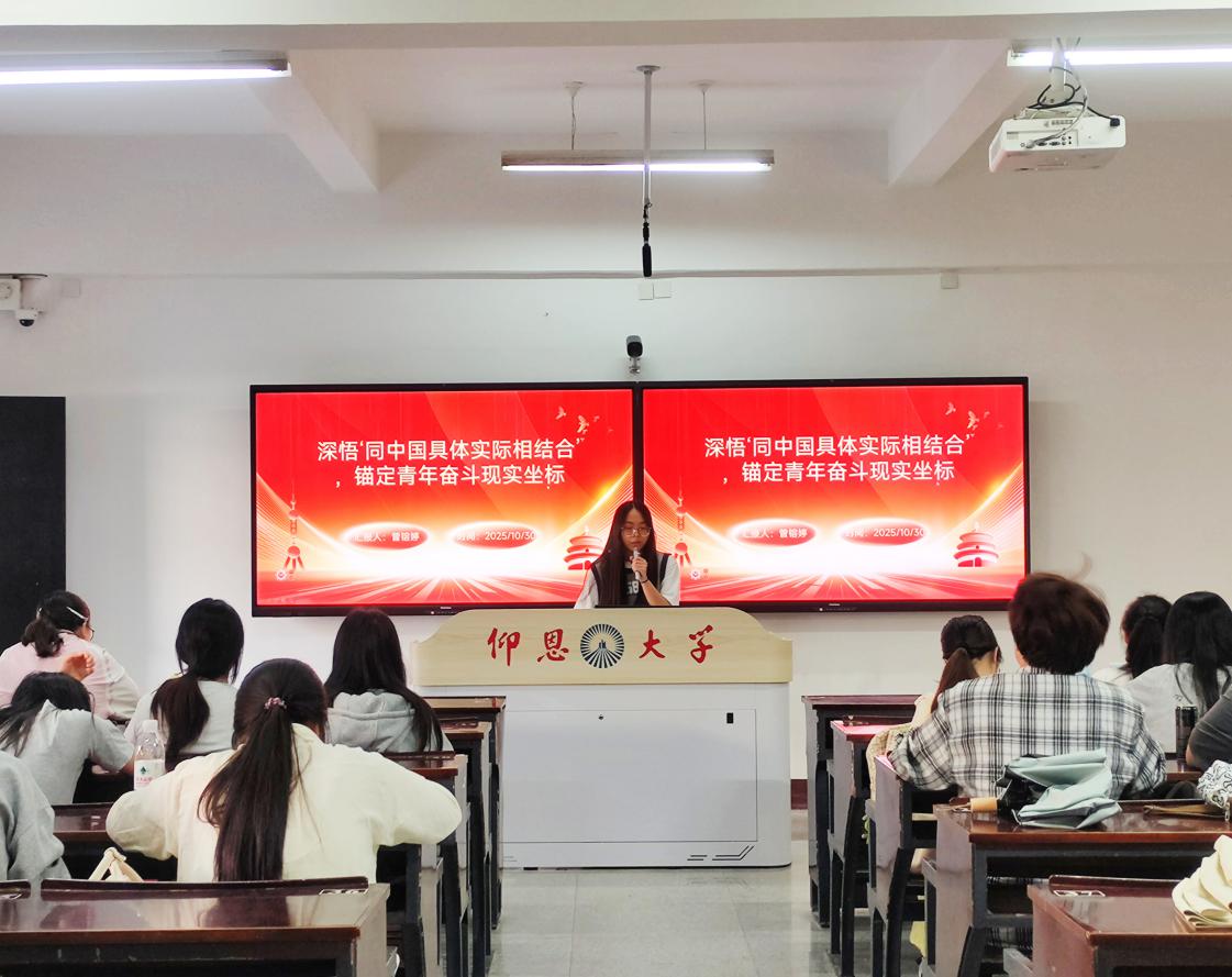 为引导党员及积极分子深刻领会“同中国具体实际相结合”的核心要义,锚定青年成长与时代需求的契合点,2025年10月30日下午16:00,米兰milan官方网站金融系学生第一党支部在仰恩楼B5-201教室召开“深悟‘同中国具体实际相结合’,锚定青年奋斗现实坐标”专题学习会。支部书记何丽玲老师、支部全体学生党员、各班入党积极分子参加了此次会议。